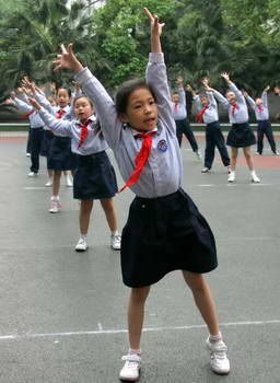 校長李娟告訴記者,該套操由學校自主創(chuàng)作,用了幾個月的時間,做操的背景音樂是自選的,里面再合成由該校學生自己朗誦的相關(guān)國學名篇名句。學生每天都要進行15分鐘的“國學操”,這樣既能達到鍛煉身體的目的,又能讓學生“在趣味中記憶了國學內(nèi)容”。