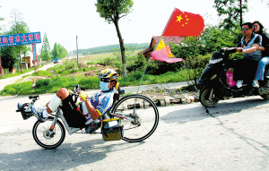 由于不好打擾騎車人的“騎興”,記者只能在與其短暫并行時(shí)了解到,他來(lái)自北京,準(zhǔn)備就這樣一直騎到深圳。問(wèn)起他在武漢境內(nèi)的騎行的感覺(jué),他高高豎起了大拇指。記者與他分手繼續(xù)做了相關(guān)采訪,才知道這位北京哥們兒可不是什么“怪物人”,他的座駕的專業(yè)名稱叫“躺車”,在國(guó)外已經(jīng)風(fēng)靡了近一個(gè)世紀(jì),擁有了一大批愛(ài)好者!疤绍嚒卑l(fā)力依靠的是腳力和腰力,比一般的自行車更省力、更舒服。一輛高質(zhì)量的“躺車”至少也要1200美元。如今國(guó)內(nèi)各地也開(kāi)始出現(xiàn)不少“躺車”發(fā)燒友,他們大多自己DIY,還成立了聯(lián)誼會(huì),開(kāi)展專業(yè)比賽呢。(記者張寧)