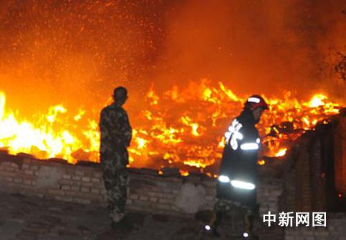 烏魯木齊一木材加工廠深夜突發(fā)火災(圖)