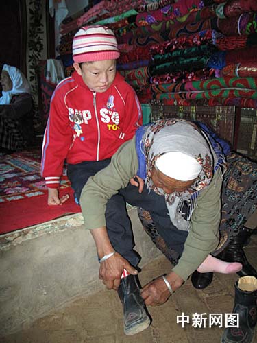 如今,20歲的麥爾孜依仍然不會(huì)說(shuō)話,走起路來(lái)?yè)u搖晃晃,除了吃飯以外,生活完全不能自理,但能聽懂簡(jiǎn)單的哈薩克語(yǔ)。記者在采訪中發(fā)現(xiàn),媽媽比依臺(tái)坎始終牽著麥爾孜依的手,時(shí)不時(shí)的為麥爾孜依擦擦鼻涕,整理帽子。麥爾孜依則時(shí)不時(shí)的對(duì)父母經(jīng)常報(bào)以燦爛而羞澀的笑容。