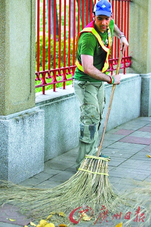“五一”前夕,廣州市環(huán)衛(wèi)局組織起在穗外籍人士體驗(yàn)環(huán)衛(wèi)工作,使更多的人理解和支持環(huán)衛(wèi)工作,同時(shí)也反映出普通環(huán)衛(wèi)工人對(duì)城市建設(shè)貢獻(xiàn)的點(diǎn)點(diǎn)滴滴。羅密歐自愿參加了這次活動(dòng),短短半日時(shí)間,他除了清掃馬路外,還嘗試了鏟“牛皮癬”、乘坐小黃車收運(yùn)垃圾和到居民樓收垃圾袋等環(huán)衛(wèi)工作!俺隽艘簧砗,比去健身房效果好多了。我現(xiàn)在想去洗澡!”工作完畢后,羅密歐用流利的中文笑著告訴記者,還一邊擺出“鬼馬”的造型,讓人忍俊不禁。羅密歐今年30出頭,來廣州已兩年半,現(xiàn)在是一家意大利餐館的副董事長(zhǎng)兼市場(chǎng)總監(jiān),偶爾也會(huì)在廣州的英語電視節(jié)目上客串主持。他說,其實(shí)環(huán)衛(wèi)工作對(duì)他來說不算十分新鮮,“我18歲中學(xué)畢業(yè)后第一份工就是室內(nèi)保潔,所以對(duì)環(huán)衛(wèi)工人的辛苦我有同感。”