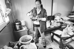 李涵的丈夫工作忙,每星期回家的次數(shù)少得可憐。白天,必須自己動手洗、切、煮,彎著腰在電磁爐上燒菜,李涵說確實有點累。