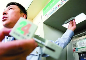昨天上午,朝陽公安分局內(nèi)保處王警官介紹,4月28日20時30分,市民張女士在位于亞運(yùn)村附近的一家中國農(nóng)業(yè)銀行支行某分理處自助銀行辦理取款業(yè)務(wù),發(fā)現(xiàn)三臺提款機(jī)僅有一臺可用,另外兩臺的屏幕都被A4紙貼上,寫著“本機(jī)正在升級中,請見諒”,當(dāng)張女士打算在唯一能用的機(jī)器上取款時看到,這臺機(jī)器上方多了一個方形盒子,下方的插卡口處套了一個標(biāo)有“24小時自助銀行服務(wù)”的卡槽,張女士覺得可疑,立即向銀行和公安機(jī)關(guān)報警。