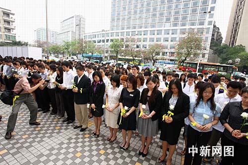 中新網(wǎng)廣州5月12日電 (記者 莫非 通訊員 楊明釗 黃永威 劉慧儀)由廣東多家新聞機(jī)構(gòu)和安利(中國(guó))公司主辦的“5.12大地震周年影像展”,已經(jīng)在廣州市解放北路以太廣場(chǎng)安利越秀店鋪門前展出了5天,5月12日下午14時(shí)28分,上千名廣州市民與安利志愿者自發(fā)來(lái)到周年影像展現(xiàn)場(chǎng)悼念地震受難同胞。