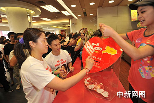 長(zhǎng)跑活動(dòng)結(jié)束后,楊威和高崚一起來(lái)到附近開(kāi)設(shè)募捐箱的肯德基餐廳,帶頭捐款,并帶動(dòng)了眾多市民加入該行列。該項(xiàng)募捐活動(dòng)自今日起將持續(xù)兩周。