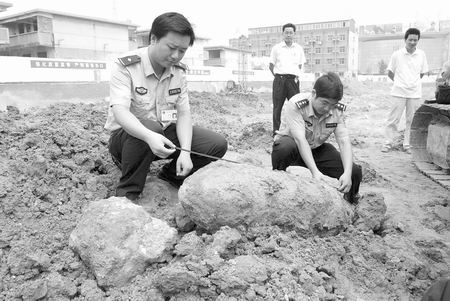 大河報 記者杜文育通訊員陶華鳴文圖訊“好家伙,是一枚大炸彈!”7月25日,在許昌市南關大街南段一工地上,一輛挖掘機正在進行挖掘地基作業(yè),隨著一聲金屬與金屬撞擊的聲響,一枚沒有引爆的大炸彈赫然出現(xiàn)在眼前,人們急忙報警。