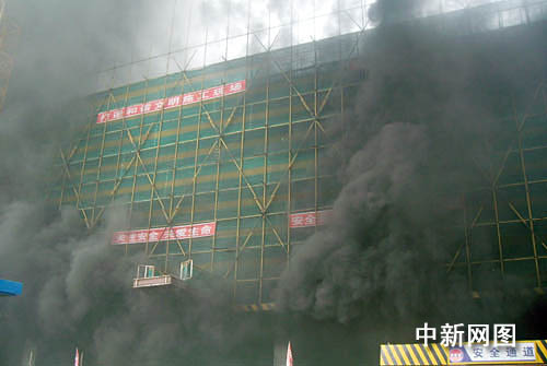 整個施工大樓都被煙霧籠罩