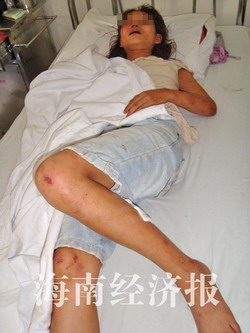 柯某見記者采訪,一直埋著頭不肯回答記者的問話。經海南經濟報記者再三詢問,柯某稱她是貴州某大專二年級學生。22日晚9時許,她與幾名朋友在紅城湖燒烤園喝酒。23日凌晨1時許,喝醉酒的她得知林某就在附近,便叫一起喝酒的那伙朋友去“教訓”林某。