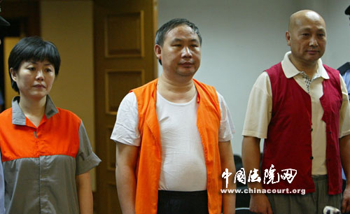 手里拿著各種軍事院校招生表格,向落榜考生家長承諾可以幫助孩子上軍校,保證有軍籍、包分配,可是學生卻一直無法入學。今天上午,北京棋幫投資管理有限公司法定代表人周濤(女,46歲,上圖左一)、河北籍無業(yè)人員張克文(男,45歲,上圖左二)、河北籍無業(yè)人員胡國玲(男,56歲,上圖右一)三人因涉嫌詐騙罪在北京市第一中級人民法院受審。