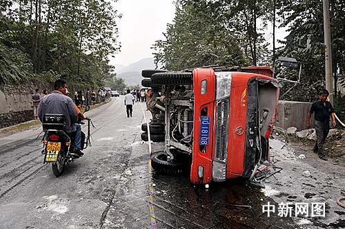 據(jù)恩施市交警大隊(duì)有關(guān)人員介紹,當(dāng)天13時(shí)30分,一輛載有8人的恩施雙龍客運(yùn)公司面包車(鄂Q18893)前往白楊坪鄉(xiāng)熊家?guī)r,行至富民水泥廠上坡段時(shí),突遇滿載石灰的農(nóng)用車(鄂Q18108),農(nóng)用車司機(jī)忙向右打方向盤,從而導(dǎo)致農(nóng)用車側(cè)翻,壓住面包車同時(shí)還向前滑行并導(dǎo)致重大交通安事故發(fā)生。