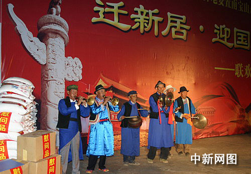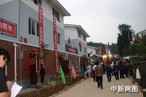 9月28日晚,當(dāng)?shù)嘏e行了“遷新居•迎國(guó)慶”5.12大地震失地群眾異地安置聯(lián)歡晚會(huì),南寶山的新主人們穿上盛裝,點(diǎn)燃篝火,跳起歡快的鍋莊,祝福祖國(guó)60歲生日。