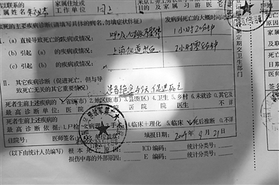 記者隨后找到了祁長(zhǎng)江的治療記錄和死亡證明。261醫(yī)院提供的死亡證明上寫(xiě)到,祁長(zhǎng)江,30歲,主要職業(yè)和工種為駕駛員,直接導(dǎo)致死亡的疾病或情況為呼吸心跳驟停,上消化道出血,其它疾病診斷為“患者絕食49天,促進(jìn)死亡”。