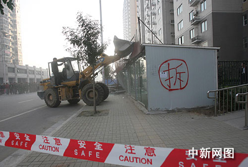 據(jù)悉,自燕莊安置區(qū)正式建成入住以后,極個別村民無視城市市容規(guī)劃要求,擅自在安置區(qū)周邊(包括沈北路、英協(xié)路、玉鳳路與沈北路交叉口)違章搭建門面房,共99間,嚴(yán)重影響市容環(huán)境,在社會上造成非常惡劣的影響。未來路辦事處組織執(zhí)法中隊(duì)多次前去制止私搭亂建現(xiàn)象,并依法對當(dāng)事人下達(dá)《責(zé)令改正通知書》,張貼《拆除公告》,責(zé)令其限期自行拆除違章搭建。完