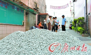 昨天早上7時,家住順德區(qū)容桂恒順閣小區(qū)的桂婆拄著拐杖去買菜,剛走到小區(qū)門口時就愣住了:狹窄的小道被一堆1米來高的碎石堵得嚴(yán)嚴(yán)實實。該小區(qū)50多戶居民只好在碎石邊鏟出一條小道,但是小區(qū)內(nèi)仍有多輛私家車受堵開不出去。
