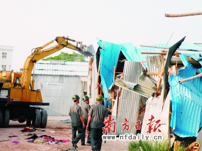昨日,在繼近兩年來近百次的打擊走私舊服裝的行動后,陸豐市出動800多公安、工商、城管等警力、人力,對位于碣石鎮(zhèn)新繞村的“洋垃圾”窩藏點(diǎn)的288間鐵皮房進(jìn)行定點(diǎn)清除。