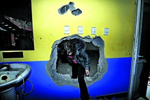 京漢生活廣場位于金漢綠港小區(qū)內(nèi),是一座綜合性商業(yè)網(wǎng)點。昨日下午,記者在廣場一層看到,一家藥店的玻璃幕墻被完全砸毀,店內(nèi)的貨架凌亂地堆在一邊,“很多藥都被搶走了!钡曛髭w先生指著所剩不多的藥品稱,昨晨1時20多分,店外有人敲門說買藥,他開門后,多名男子闖進來,用斧子和錘子砸毀店鋪,搶走藥品,自己和妻兒從后門跑出去報警。