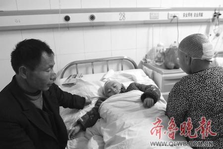 在醫(yī)院,記者見到了術后的三個女孩。據(jù)醫(yī)務人員介紹,4歲的小女兒倩倩受傷最嚴重,其頭部被砍五刀,左手被砍掉兩個手指,剛從重癥監(jiān)護室轉入病房;二女兒6歲的蕊蕊頭部被砍三刀,肩膀被砍一刀,昏迷了兩天后,目前高燒不退,躺在病床上接受治療;10歲的大女兒華華頭部被砍一刀。吳某的鼻梁和下唇被妻子砍斷。短短幾天,已花去了三萬多元的治療費用,這些錢是吳某從親戚、朋友那里東拼西湊借來的,由于倩倩和蕊蕊受傷較重,還需更多的醫(yī)療費用,吳某和大女兒都沒有住院,而是到醫(yī)院附近的衛(wèi)生室掛吊瓶。