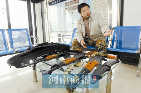 嫌網(wǎng)絡(luò)虛擬游戲不過癮,鄭州幾個CS發(fā)燒友買來AK47仿真槍準(zhǔn)備玩實戰(zhàn)游戲。但民警提醒,拿仿真槍玩實戰(zhàn)游戲是違法的。