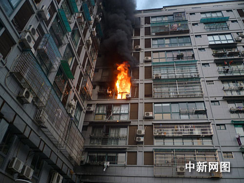 3分鐘后,消防官兵最先到達了現(xiàn)場。起火點位于6樓618室,整個房間已全部起火,火勢已處于猛烈燃燒階段,臨窗部分火焰已向外竄出向著四周蔓延,燃燒產(chǎn)生的濃煙充斥著整個樓道。在大樓的另一面,6樓、7樓部分住戶打開窗戶上向外呼救。