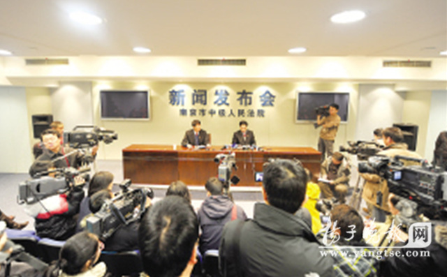昨天上午10點(diǎn)40分,張明寶案宣判剛一結(jié)束,南京市中級人民法院就召開了新聞發(fā)布會。主管刑事審判的副院長吳文康作為新聞發(fā)言人回答了記者提問,包括央視在內(nèi)的數(shù)十家媒體參加了新聞發(fā)布會。發(fā)布會共進(jìn)行了近半個小時。