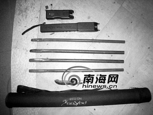 “你隨身攜帶的電棍做什么用的?還自制開鎖器?” 記者在瓊?词厮姷皆谘旱暮沃铱 :握f,電棍有電擊功能又有照明功能,攜帶電棍用來防身,如果被人發(fā)現(xiàn),他們便用電棍電擊他人,同時在作案時用來照明。