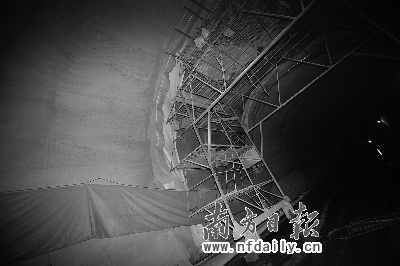 南廣高鐵8標(biāo)項(xiàng)目部黨工委書記楊躍俊告訴記者,白云隧道單向掘進(jìn)669米后,發(fā)現(xiàn)隧道內(nèi)地質(zhì)條件復(fù)雜,處于斷層和涵洞區(qū)。1月12日一次小型泥石流后,隧道停止繼續(xù)挖掘!暗谝淮文嗍骱,我們有一個(gè)應(yīng)對(duì)方案,前幾天肉眼判斷此處已沒(méi)有再發(fā)現(xiàn)塌方的預(yù)兆。”