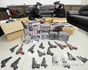 犯罪嫌疑人交代,仿真手槍從我市某縣市場流出,準(zhǔn)備運往四川遂寧銷售。