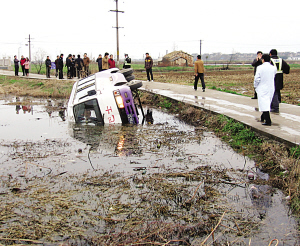采訪中,家長(zhǎng)們幾乎異口同聲表示,平常開(kāi)車的是一名何姓男子,車技很好,可出事時(shí)開(kāi)車的卻是一名不相識(shí)女子。記者發(fā)現(xiàn),出事的馬甫路李家橋路段非常狹窄,僅夠一車通行,而且從不遠(yuǎn)處的水泥橋下來(lái)就是處彎道,之前又曾下過(guò)雨有點(diǎn)濕滑,可以說(shuō)在這樣的路段開(kāi)中巴車很具有難度。家長(zhǎng)蔣先生告訴記者,“這完全就是對(duì)孩子不負(fù)責(zé)任,這里的道路寬不過(guò)3米,很多地方根本就無(wú)法會(huì)車,而且有的路邊就是深深的水塘和田地,稍不留神就會(huì)滑下!奔议L(zhǎng)吳先生更是向記者表示,他認(rèn)識(shí)那名開(kāi)車女子,應(yīng)該是姓鮑,好像是做皮草生意的,她是不是拿中巴車來(lái)練手啊,說(shuō)不定根本就沒(méi)駕照。
