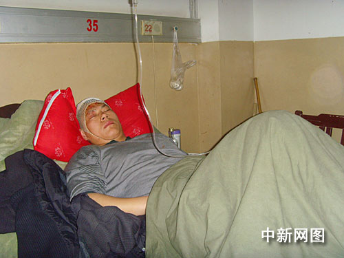 3月22日下午1時40分許,記者在阜陽市人民醫(yī)院急救中心二樓病房里,見到了肇事司機董飛,他躺在病床上,旁邊坐著一女子與其聊天。當發(fā)現(xiàn)有記者前來采訪拍照,該女子迅速離開,面對記者董飛一直不開口說話。隨后,病房內(nèi)看守董飛的兩名警察阻止了記者采訪。