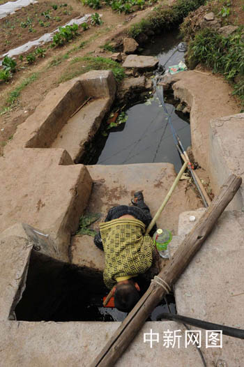 小劉凱告訴記者,受持續(xù)干旱缺水影響,他到村莊到遠(yuǎn)處取水已經(jīng)有一周時(shí)間了。由于供村里食用的水源在慢慢減少,每天中午放學(xué)后,劉凱都要擔(dān)著自己的“水桶”到遠(yuǎn)地“打水”,往返需要近半個(gè)多小時(shí)。據(jù)記者上前仔細(xì)察看,小劉凱取水之地作為村里為數(shù)不多的水源之一,渾濁的水面難以見底,水源質(zhì)量令人擔(dān)憂。