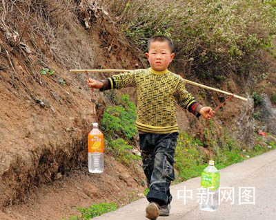 中新網(wǎng)興義3月29日電 (曹多然 章瑩)黔西南旱情目前仍在持續(xù)。3月29日,記者此間在貴州旱區(qū)走訪中發(fā)現(xiàn),當(dāng)?shù)卮迕袢駝?dòng)員,通過找水、買水等方式積極開展自救,取水路上不時(shí)可見稚齡“小水童”的身影。貴州興義市白碗窯鎮(zhèn)柳樹坪村8歲的劉凱就是其中的一員。