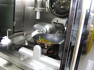 2006年10月,中國發(fā)明了世界第一臺中國菜肴烹飪機器人——“愛可”。由揚州大學(xué)旅游烹飪學(xué)院、上海交通大學(xué)機器人研究所和深圳繁興科技公司,歷時4年研制成功。揚大旅烹學(xué)院蔡麗婭副書記告訴記者,“愛可2.0”能迅速學(xué)習(xí)和掌握優(yōu)秀廚師的菜肴烹制技巧,“手藝”能和名廚比肩,具有完全自主知識產(chǎn)權(quán)。截至2009年12月,已擁有150多個發(fā)明專利。被中科院認(rèn)定為“必將改變?nèi)祟惿罘绞降囊豁椫卮蟀l(fā)明。”