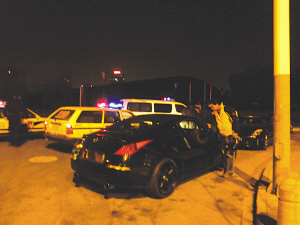 就在記者采訪的時(shí)候,4輛豪車又回到了奧體北門。大家停好車,紛紛下車抽煙聊天。記者急忙追了上去,只見(jiàn)在奧體北大門西側(cè)路面上,一字排開(kāi)著4輛顏色不一的豪華跑車,車尾處留下了一道道長(zhǎng)長(zhǎng)的剎車痕跡,足見(jiàn)停車前的速度很快。4輛顏色不一的豪華跑車中,有三輛車子上沒(méi)有上牌照,有一輛車子車牌擋著。車上下來(lái)的都是年輕人,車手都是男的,每人身邊跟著一位大美女。車主們說(shuō)這些跑車都是自己私車,個(gè)個(gè)都自稱是富二代,他們每個(gè)人所開(kāi)的跑車都在80萬(wàn)至100多萬(wàn)之間,還不是最好的車輛。見(jiàn)此情況,記者立刻報(bào)了警,并拿出相機(jī)拍照采訪。