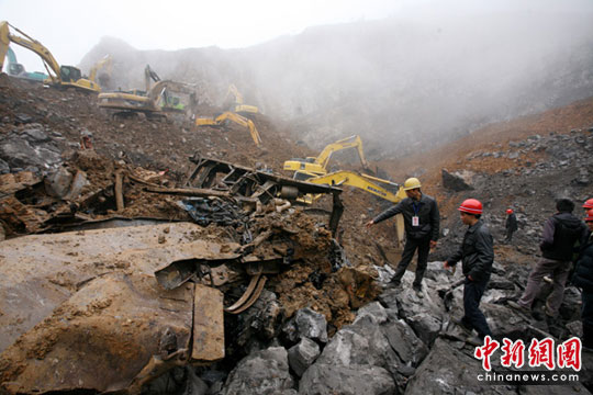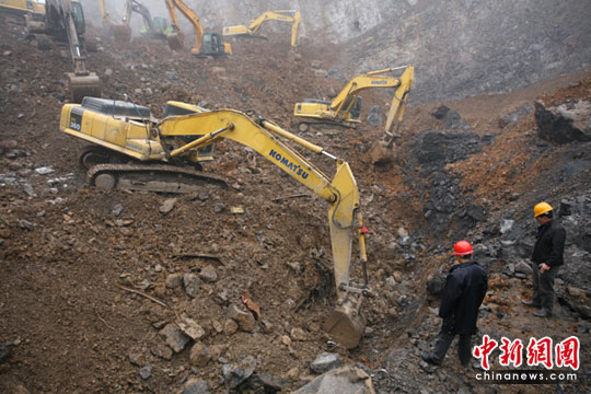 據(jù)介紹,搜救犬幫助確定位置后,繼10日17:30分發(fā)現(xiàn)一臺(tái)后,今天又在垮滑現(xiàn)場(chǎng)陸續(xù)發(fā)現(xiàn)3臺(tái)汽車,至此垮滑現(xiàn)場(chǎng)已找到5臺(tái)汽車殘骸。記者在現(xiàn)場(chǎng)看到,汽車大梁、駕駛室、發(fā)動(dòng)機(jī)全部支離破碎成了一堆廢鐵。10臺(tái)挖掘機(jī)正在不停的工作,F(xiàn)場(chǎng)兩位公安人員拿著照相機(jī)、攝像機(jī)正在汽車殘骸前取證。三位救援工作人員一邊指揮,一邊提醒挖掘機(jī)司機(jī)小心謹(jǐn)慎。樂(lè)山消防支隊(duì)的官兵也在查看現(xiàn)場(chǎng)情況,看能否發(fā)現(xiàn)被埋人員。武警樂(lè)山支隊(duì)的30余名官兵也做好一切準(zhǔn)備,一但發(fā)現(xiàn)情況將迅速趕赴清理現(xiàn)場(chǎng)增援。