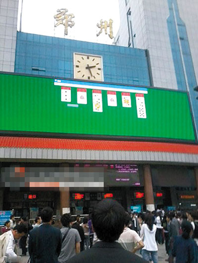 5月16日,鄭州火車站本該顯示車站公告的戶外超大顯示屏上,卻出現(xiàn)了紙牌游戲(見圖),共耗時(shí)20來分鐘,游戲過關(guān)后,綠色屏幕上煙花襯著“你贏了”三字。鄭州火車站表示當(dāng)時(shí)打牌的人不是火車站的工作人員,是施工方的。據(jù)瀟湘晨報(bào)報(bào)道,昨晚,河南本地一公司宣稱對(duì)此事負(fù)責(zé)并致歉。
