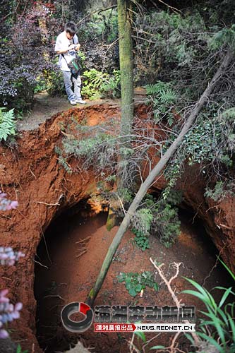 昨日(7日)下午,中南大學(xué)工程地質(zhì)與地質(zhì)災(zāi)害研究所副教授金福喜趕到烈士公園,仔細(xì)查看后說:“初步估計(jì),地下應(yīng)該有石灰?guī)r溶洞!