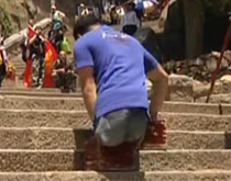 最近網(wǎng)絡(luò)上有一段爆紅的短片,是4個大男人機場候機時太無聊了,玩起了人肉腳踏車。這其實在國外是一個很普遍的游戲,但是其他的人肉腳踏車都是固定不動的,而這個在傳送帶上的人肉腳踏車就真的動起來了。