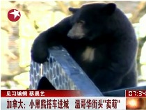 小黑熊搭車進(jìn)城 溫哥華街頭“賣萌”