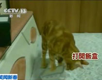 實(shí)拍:貓咪開飯盒 自己動(dòng)足取食