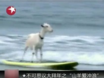 高手山羊愛沖浪 能翻越數(shù)個(gè)浪潮