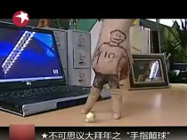 白領(lǐng)用手指踢球 動作逼真靈活宛若梅西