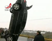 一時心急:油門當(dāng)剎車 轎車沖進河