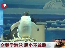 可愛小企鵝學(xué)游泳 膽小不敢跳下水