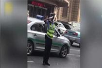 交警持續(xù)敬禮勸退違停車輛