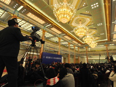 - 李肇星:2010-3-4 11:08十一屆全國人大三次會議的開幕會、閉幕會和其他各次全體會議接受中外記者采訪,還有一大批代表團(tuán)的團(tuán)組會議將向中外記者開放。大會期間將舉行若干場記者會,邀請全國人大有關(guān)專門委員會、國務(wù)院有關(guān)部門的主要負(fù)責(zé)人分別就加強和改善宏觀調(diào)控、我國的外交政策和對外關(guān)系、保障和改善民生、節(jié)能減排和應(yīng)對氣候變化等問題回答記者們的提問。3月14日會議閉幕會后,國務(wù)院總理溫家寶將與采訪會議的中外記者見面并回答問題。采訪大會的記者越來越多,為了方便大家采訪,今年的記者會都安排在大會堂三樓金色大廳舉行!