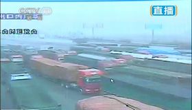 【同期聲】(傷者 閃彎彎)當時就是霧太大,因為前面有很多地方堵車,然后我們停下來,還沒有一分鐘,有一輛半掛車,然后他就,可能沒有看到我們車停在那里,不知道堵車,開得有點快,然后打一把,不過他沒撞上來,擦了一個邊,然后一把方向盤打過來,我們剛一下車,看看車有沒有問題,然后后邊就是,那種半掛剎車剎不住的聲音,吱吱吱,然后嘭一聲,兩個聲音是一起的,然后就什么都不知道了。光知道趴在那里,睜開眼就,感覺車是晃的,就像被人家撞了一樣那種,還以為是地陷。下去一看,就是等到睜開眼一看的時候,也以為是地陷,不知道是橋塌了,只能看到眼前,就是坑一堆一堆的,坑坑洼洼的廢墟那種。有人哭,有人哭的可大聲,有一個我連臉都沒看清的大哥,他一直拖著我,從頭拖到尾,整整拖了半個小時,從上身出來他一共拖了半個小時。還有那幾個在那上邊撬,拿杠子撬腿上邊壓得那個東西的時候,就他們,反正那根本就撬不動,我腿怎么拽都拽不出來。當時他們好幾次都說,等救援隊吧,等救援隊吧,那個人說你再拔一點就出來了,再拔一點就出來了,最后一點一點把腿拽出來。那時候油箱都流空了呀,已經(jīng)不響了,然后才走出來,他們幾個抬著,把我抬到空的地方,然后第二輛救護車過來就把我們拉走了。