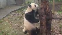 大熊貓媽媽“母愛(ài)如山倒” 下樹(shù)一屁股坐倒兒子