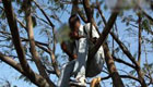 【解說】事故現(xiàn)場,被困婦女一只手死死抓住樹干,另一只手則緊緊的抱住4歲的女兒,呼喊求救。而此時農(nóng)田邊上的排水渠受到洪流影響,水流非常大。救援人員查看周邊情況后發(fā)現(xiàn),跨過排水渠是通向農(nóng)田的唯一途徑。根據(jù)現(xiàn)場掌握情況,救援人員立即架設起二節(jié)拉梯,將梯子橫跨在水渠上,但由于水流太急,二節(jié)拉梯被洪水沖刷得吱吱作響,很不穩(wěn)固,兩名救援人員綁好安全繩,一步一挪的走到排水渠的另一邊,接過婦女手中的孩子,攙扶起婦女,向安全地帶返回。