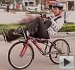 市民自制“躺車”自行車也能躺著騎