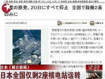 日本《朝日新聞》稱,目前日本全國(guó)僅剩2座核電站運(yùn)轉(zhuǎn)。